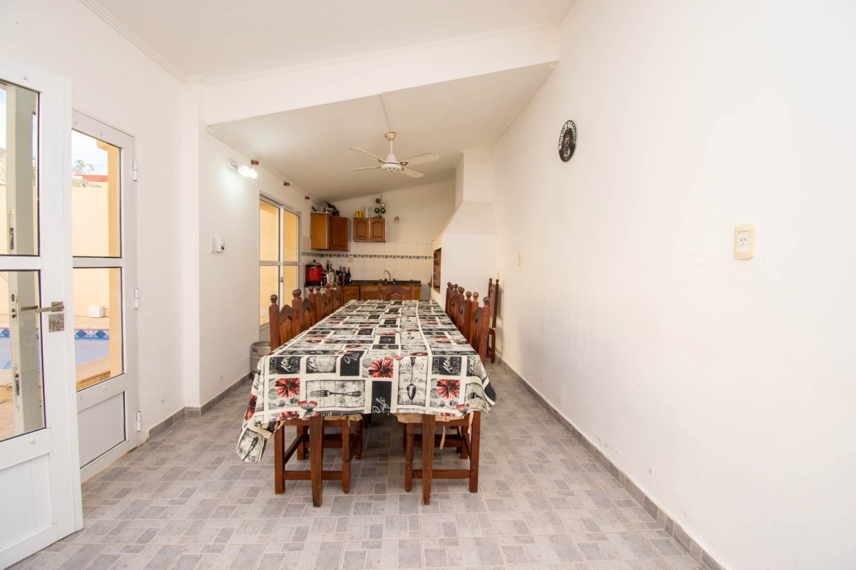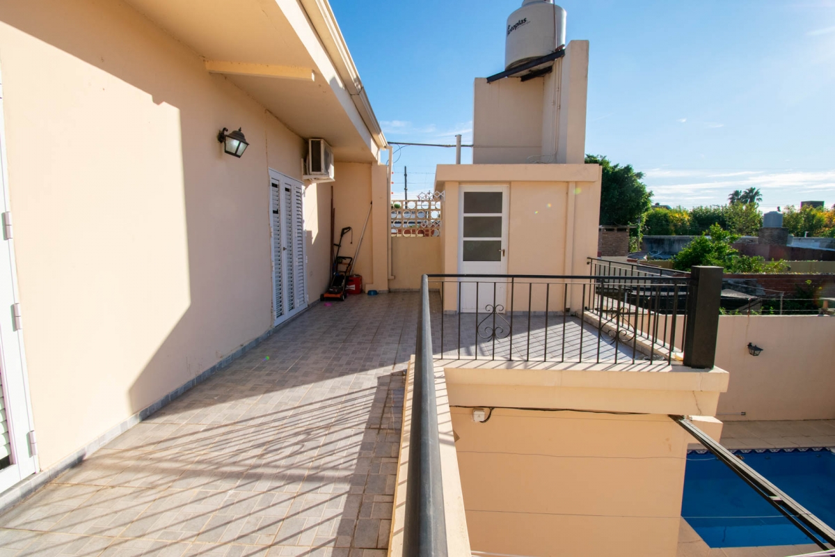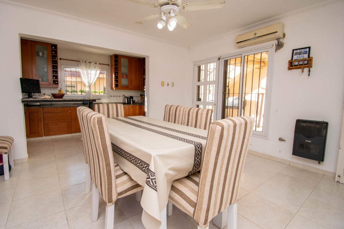 CASA EN VENTA EN GUADALUPEUbicada en cercanía a la Basílica de Guadalupe, se encuentra esta propiedad de categoría.Distribuida en dos plantas cuenta con un pequeño hall de ingreso, un primer dormitorio o cuarto de estudio. Living amplio, baño completo.La cocina comedor es cómoda, funcional y tiene muy buena iluminación y ventilación, ideal para compartir momentos en familia. El amoblamiento de la cocina se encuentra en perfecto estado, posee una barra desayunadora que complementa todo el ambiente.La cocina comedor se comunica con el patio que tiene un sector seco, que puede utilizarse como galería al desplegar el toldo de lona. El sector de cesped es continuo a la pileta. En el fondo de la propiedad se encuentra el quincho equipado con asador y amoblamiento con bacha. Tiene capacidad para diez o mas personas.En la planta alta se encuentran otros tres dormitorios, de los cuales dos tienen placares empotrados. Todos tienen pisos de parquet. En esta planta también hay un baño completo con ducha y bañera. La terraza se comunica con el patio y tiene el sector de lavadero y deposito separado del resto de la propiedad.