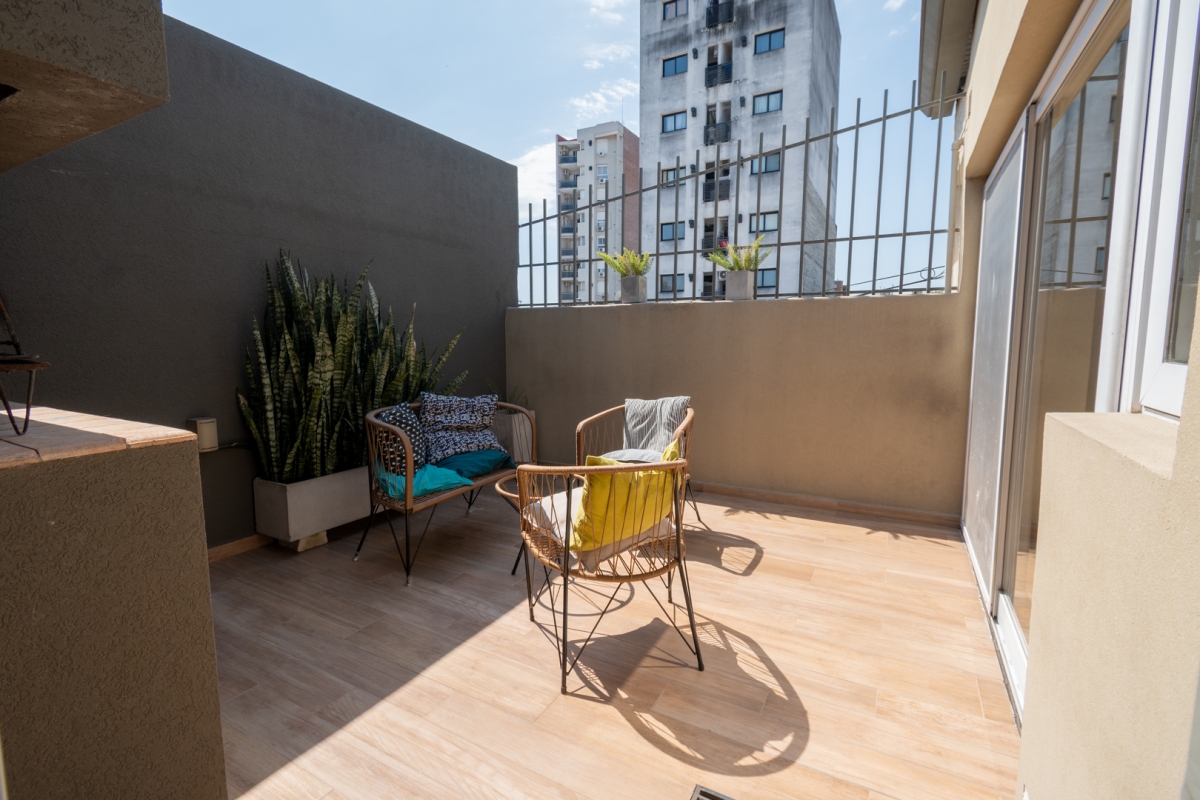 Planta alta con excelente iluminación y diseño funcional. Dispone de dos dormitorios (uno en suite), un baño adicional, amplio living?comedor, cocina sectorizada, espacio de escritorio y una terraza con asador ideal para reuniones y momentos al aire libre.