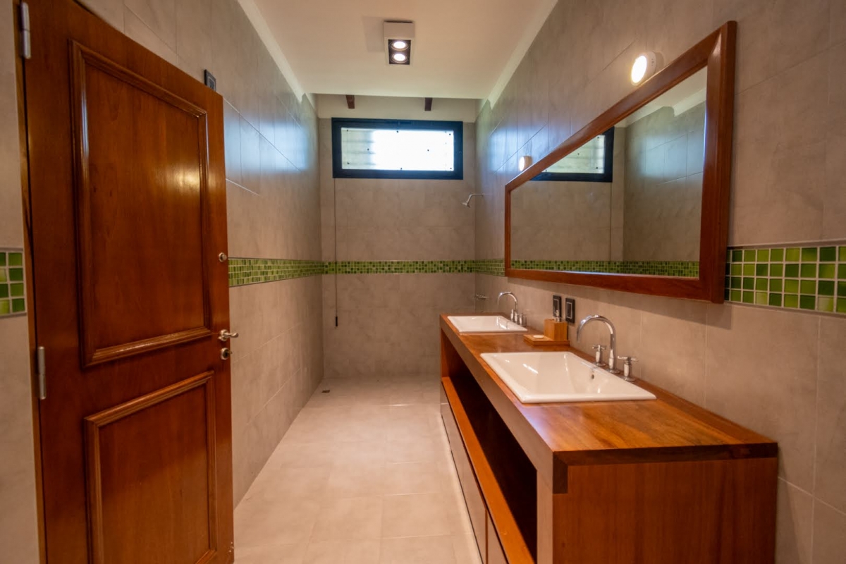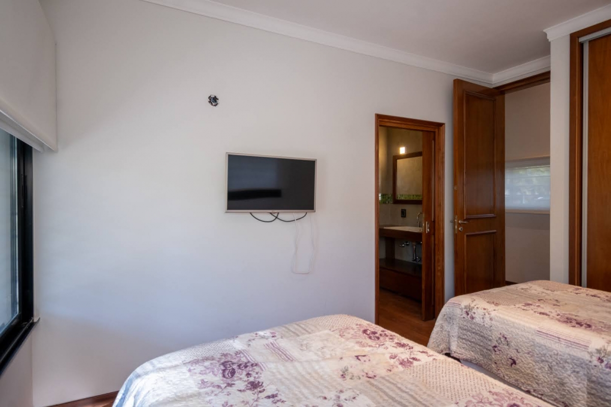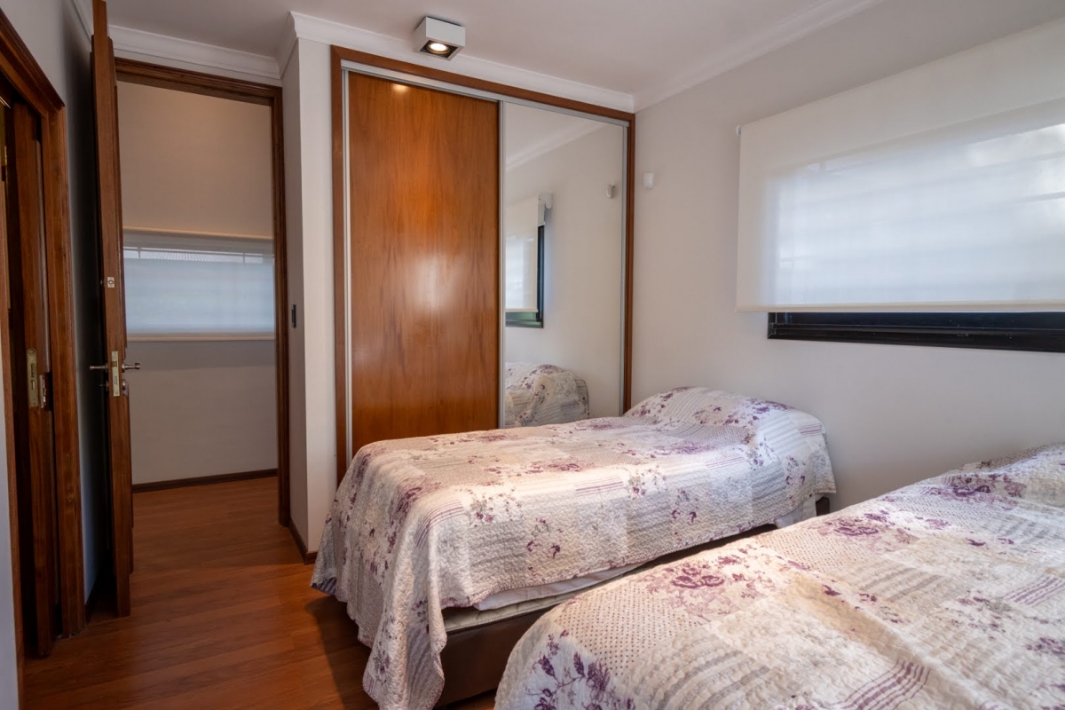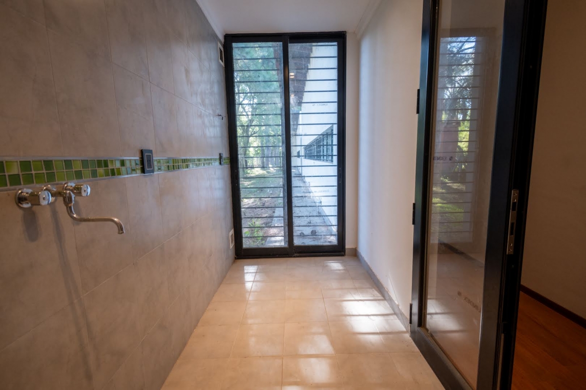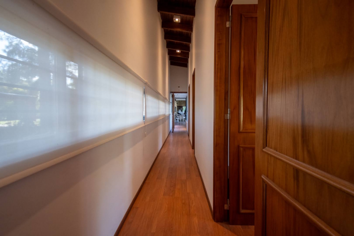 Ubicada en la intersección de Los Lapachos y Los Grillos, en Villa California, esta propiedad se encuentra a aproximadamente 500 metros de la Ruta 1, en el lado oeste. Implantada sobre cuatro lotes que conforman una superficie total de 3.212 m², se desarrolla íntegramente en planta baja, ofreciendo una distribución cómoda y funcional. El sector social se compone de un amplio living comedor, con cocina integrada mediante barra desayunadora. Todo el ambiente cuenta con grandes superficies vidriadas que generan una conexión directa con la galería y el parque. En este sector también se dispone un baño. En un ala independiente, se encuentra el área privada, a la que se accede mediante un pasillo distribuidor. Allí se ubican tres dormitorios, destacándose el principal en suite con vestidor, además de un segundo baño completo. La propiedad también cuenta con lavadero y una cochera de generosas dimensiones, ideal tanto para vehículos como para embarcaciones. En el exterior, ofrece una galería con asador y espacio destinado a quincho, piscina revestida con deck y solárium, además de un baño exterior que aporta practicidad para el uso diario. CARACTERÍSTICAS ADICIONALES: Sistema de riego automático en sector de cancha de fútbol, con seis aspersores Tres perforaciones de agua, cada una con su correspondiente bomba centrífuga Dos tanques de agua independientes: uno abastece dormitorios y lavadero, y otro cocina y comedor, ambos con bombas Rowа que garantizan excelente presión Dos pozos negros independientes Doble sistema de alarma, sectorizado, con barrera perimetral Aberturas protegidas con rejas y tejido metálico Se destaca por su sólida calidad constructiva y equipamiento de categoría. Lista para transferir. Se evalúa la posibilidad de recibir propiedades como parte de pago.