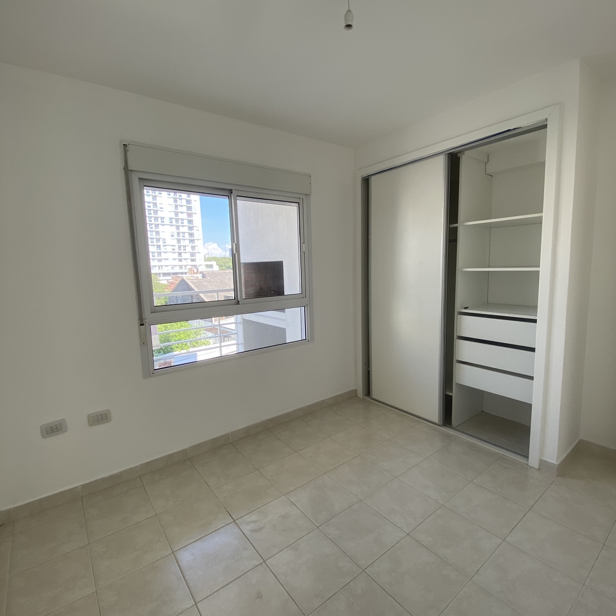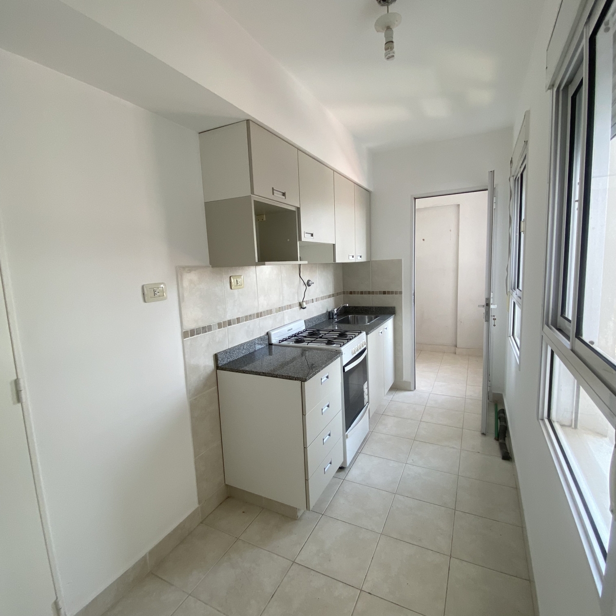 Departamento cuenta con living-comedor con balcón y asador, cocina sectorizada y dos dormitorios.